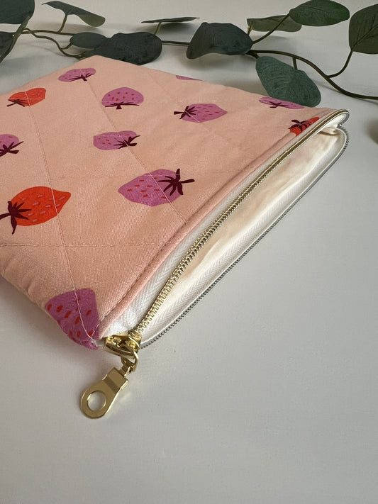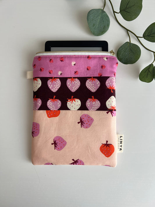 E-reader sleeve 6” gequilt - Strawberry vines pink zipper