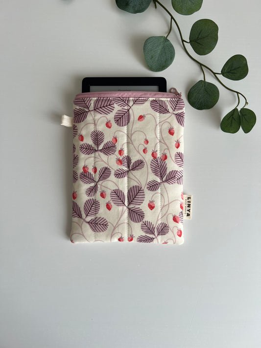 E-reader sleeve 6” gequilt - Strawberry vines pink zipper