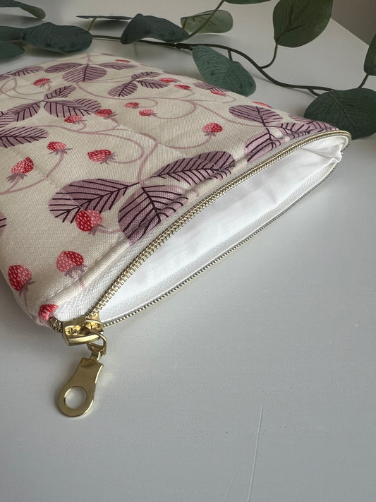 E-reader sleeve 6” gequilt - Strawberry vines pink zipper