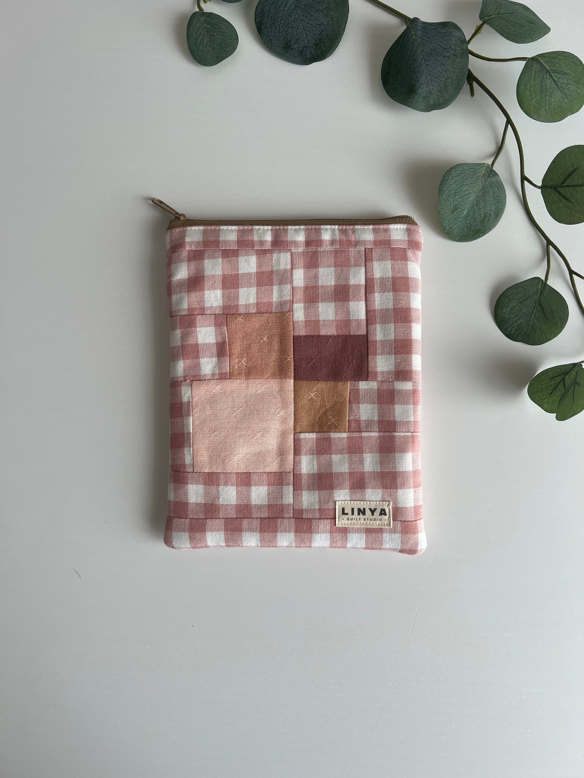 E-reader sleeve 6” uniek patchwork - Pink gingham